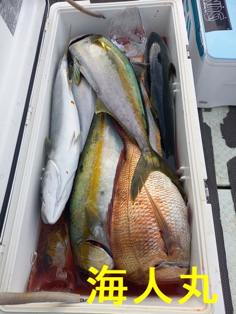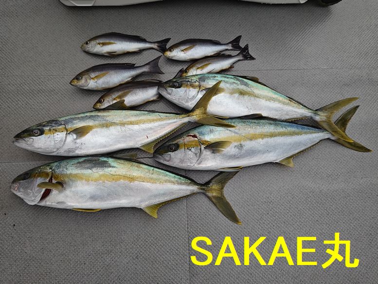 ![]() 9月7日鷹巣沖 朝便 名古屋 鈴木さん2名 ヒラマサ 55cm〜65cm 6匹 マダイ 45cm〜67cm 7匹 ハマチ 50cm〜60cm 5匹 |