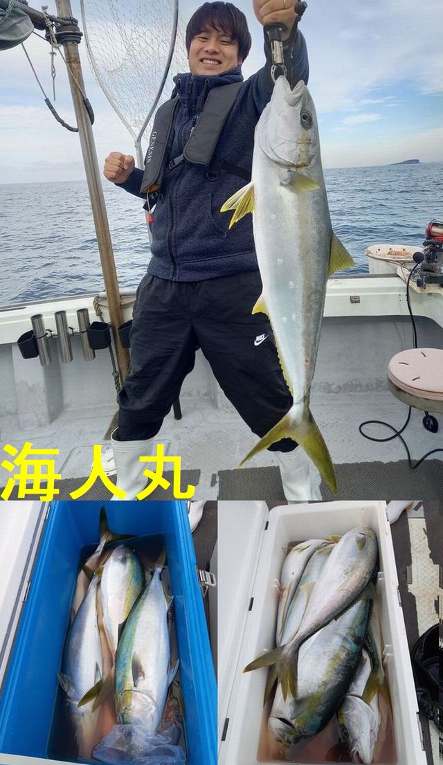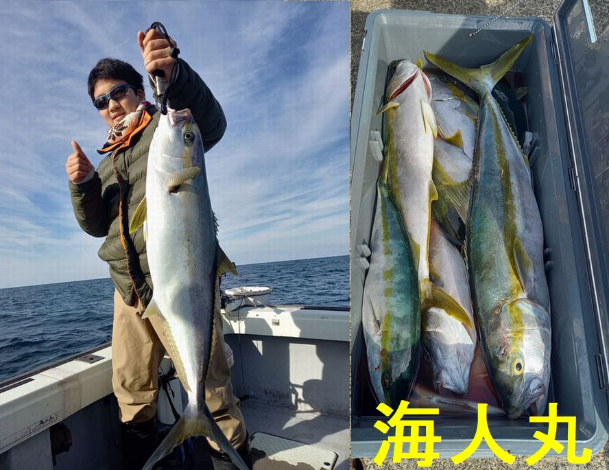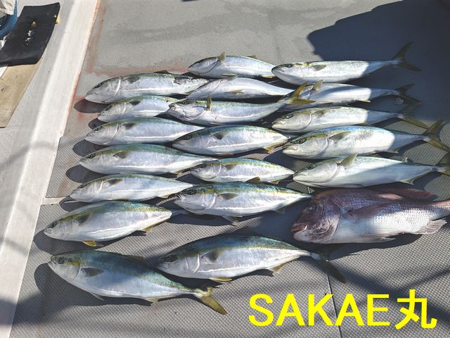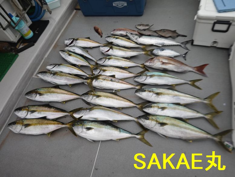 画像をクリックすると拡大します![]() 11月5日鷹巣沖 一日便 福井 西井さん2名 ヒラマサ 62cm〜77cm 10匹 ワラサ(メジロ) 60cm〜65cm 7匹 マダイ 42cm〜64cm 2匹 |