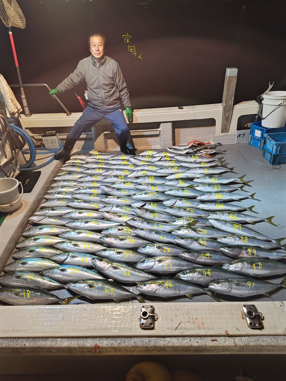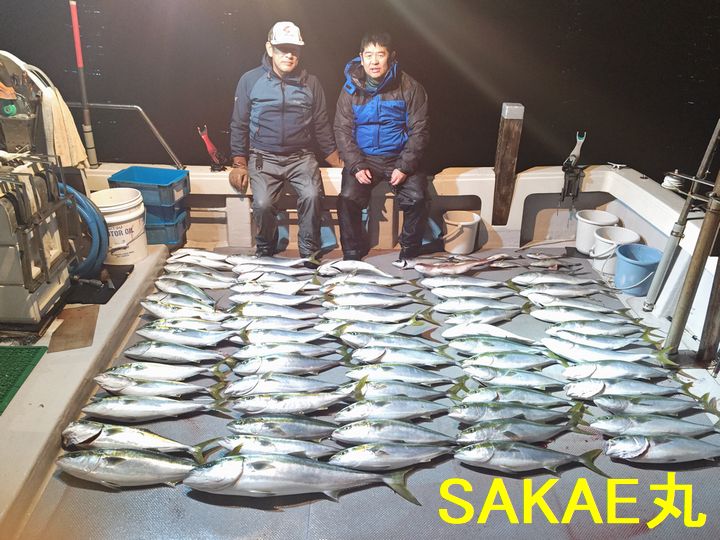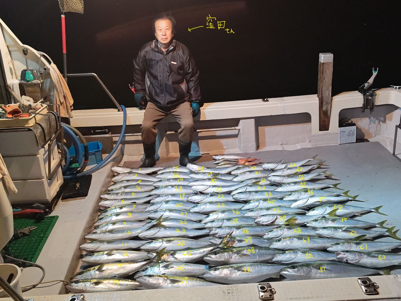 画像をクリックすると拡大します![]() 11月5日鷹巣沖 夜便 福井 重永さん2名 ワラサ・ハマチ約100匹ぐらい |