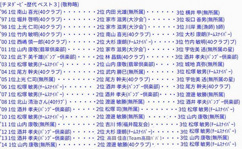 6月20日PM12:00-3:00 福井市 清水 宏通さん 21.6cm,19.2cm頭22匹 浜地 (無所属) |
