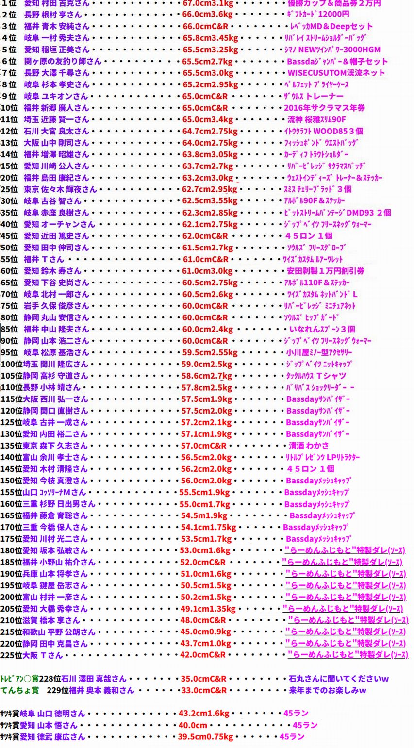 6月15日AM10-PM1:00 福井市 藤澤 武明さん 17.6cm,17.5cm頭3匹 浜地 (無所属) |