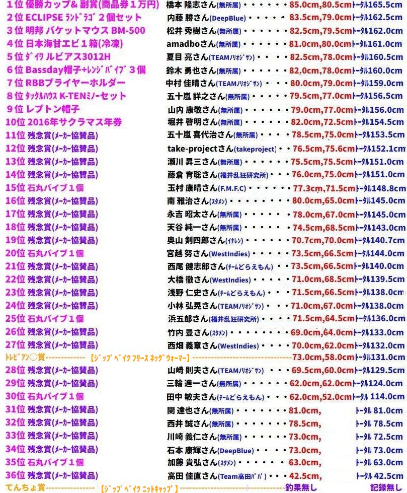 8月29日PM4:00 福井市 高田 明佳さん 15.0cm 高田 真奈美さん 16.2cm 波松 (Team高田パパ) |