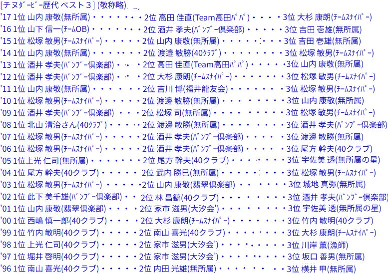 【トレビアン○賞】&【てんちょ賞】 今ダービー中に、トレビアン○氏とてんちょが釣った対象魚の一匹長寸のひとつ上の順位の方に、それぞれ素敵?な賞品がトレビアン氏とてんちょから貰えます♪(なおズルムケた場合は賞品無しとさせて頂きますw) お楽しみに〜♪ ●印の方がトレビアン〇賞。★の方がてんちょ賞です。 【協賛】 協賛募集中です! あつかましゅうございますが なにとぞ御協力のほど お願い申し上げます。m(_ _)m