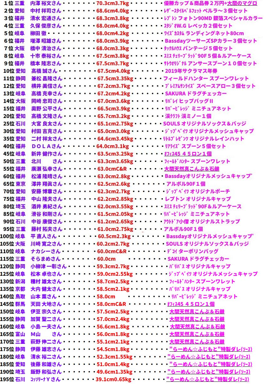 ご参加ありがとうございました〜♪ ●期間:2月1日(木)〜5月31日(木)まで ●対象魚:サクラマス1匹長寸 ●九頭竜川,足羽川,日野川(海は不可) ●参加料:無料 ●参加資格:ルアーマン(但し入漁券未購入者は参加不可) ●受付/検量場所:当店にて(閉店時は当店自宅) ☆1匹長寸(同サイズの時は検量順) 賞品:1位〜15位まで20位,25位,30位には・・・・・飛び賞が出ます。 ☆1匹長寸(同サイズの時は検量順)最終結果