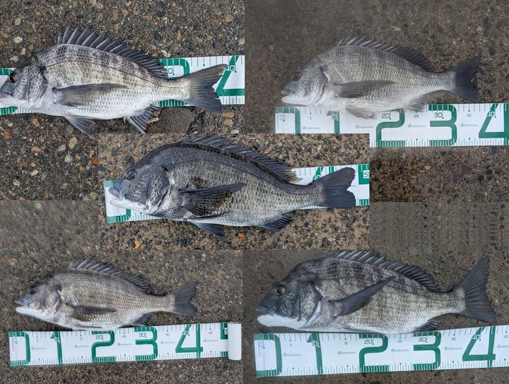 チヌ46.0cm〜31.0cm9匹(写真5匹)