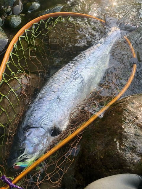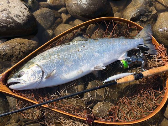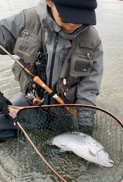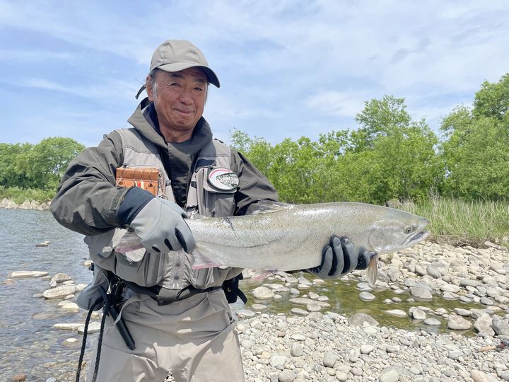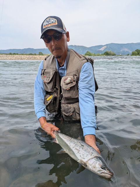 画像をクリックすると裏面へ![]() 5月30日6時頃 大阪 平田 光一郎さん サクラマス 62.0cmC&R 高速下流右岸 フライ ストリーマー |