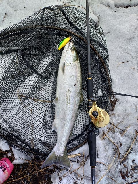 画像をクリックすると裏面へ![]() 2月23日PM4:30 福井 take-projectさん サクラマス 62.5cm3.1kg 福松大橋下流右岸 ハイランダー95Fグリーンシルバー ![]() |
