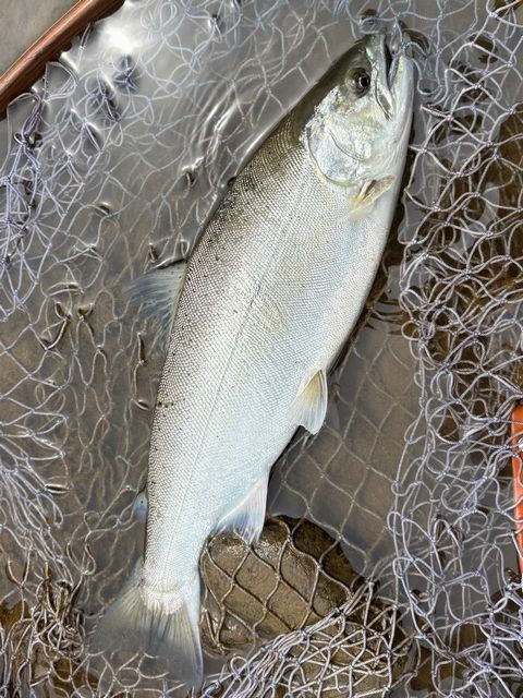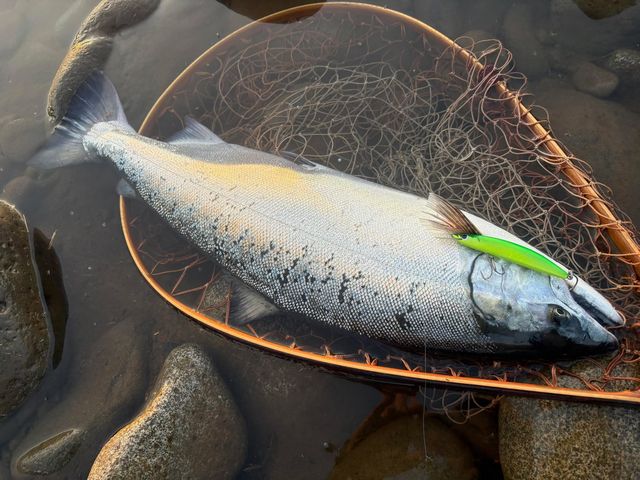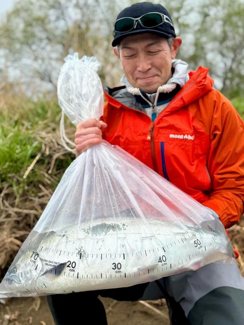 画像をクリックすると裏面へ![]() 3月22日AM6:22 愛知 ayu45さん サクラマス 54.5cm2.2kg 高屋橋上流右岸テトラ 45ロン90MDピンクゴールドアユ