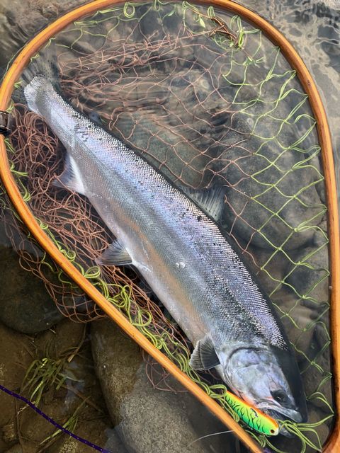画像をクリックすると裏面へ![]() 4月17日AM9:30 愛知 松田 隆文さん サクラマス 63.0cm3.2kg 東幼児園前右岸 ネットで売ってた誰かのハンドメイドルアー ブルーグリーンゴールドシルバー |