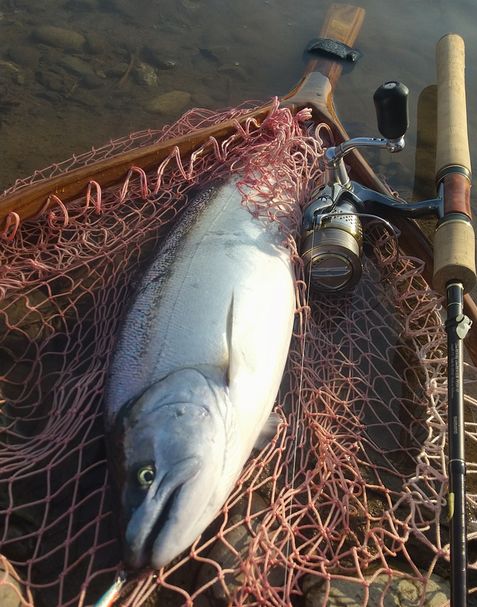 画像をクリックすると裏面へ![]() 4月29日PM2:30 福井 新郷 廣人さん サクラマス 65.0cm3.6kg(♂) 鳴鹿大堰下流右岸(オフサイド) 桜鱒スプーン メッキVer両面ハンマー18gMHR ![]() |