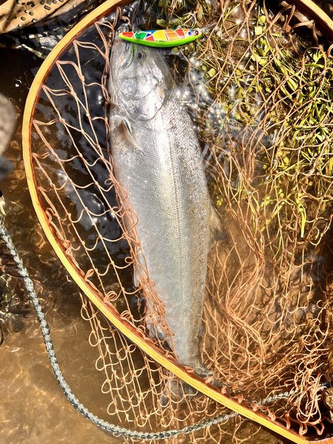 画像をクリックすると裏面へ![]() 5月24日PM5:36 静岡 macktanibataさん サクラマス 40.6cmC&R 福井大橋上流右岸 フライ ストリーマー |