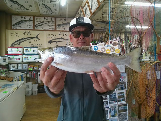 画像をクリックすると裏面へ![]() 3月20日AM8:30 愛知 松田 隆文さん サクラマス 63.0cm3.9kg 高屋橋上流左岸テトラ Dコンタクト85グリーンゴールド ![]() |
