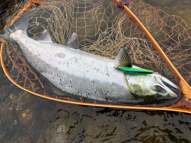 2月23日PM4:30 福井 take-projectさん サクラマス 62.5cm3.1kg 福松大橋下流右岸 ハイランダー95Fグリーンシルバー 『流木に絡まってしまってギラギラローリング…もう心臓バクバクでした( `∀´;)v』
