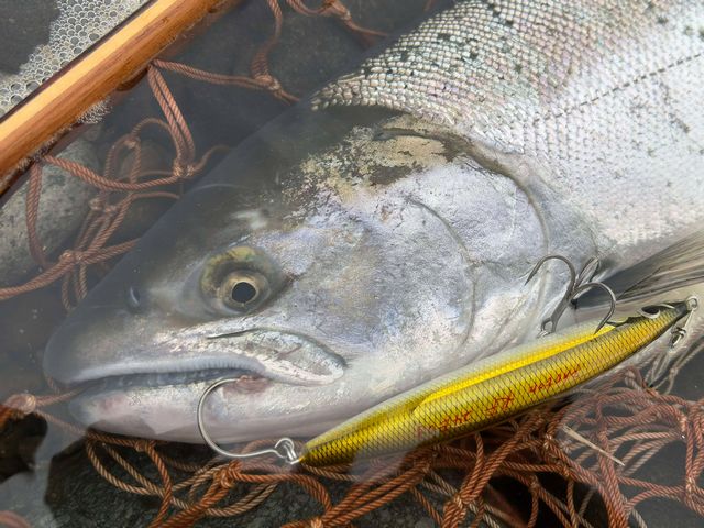 3月13日AM6:30 福井 take-projectさん サクラマス 57.0cm2.25kg 高速下流右岸 フォトンR95MF-横アイ(プロトタイプ) 『フォトンをテールから丸飲みしていました( `∀´)v』 フォトンR95MF -横アイ(プロトモデル)発売が楽しみですね♪