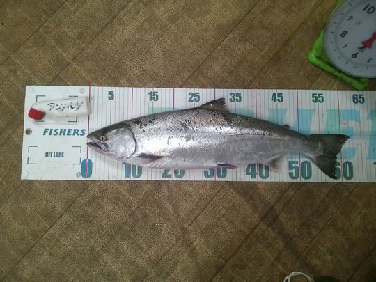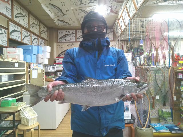 3月18日AM8:00 京都 MASAKIさん サクラマス 62.5cm2.7kg 新幹線上流右岸(フィッシャーズ裏) ワイズミノー櫻鱒SPECIAL九零FSワイズピンク 『昨年同じ頃同じような場所で掛かってパニクってラインブレイクしたのでリベンジできて良かったデス♪』