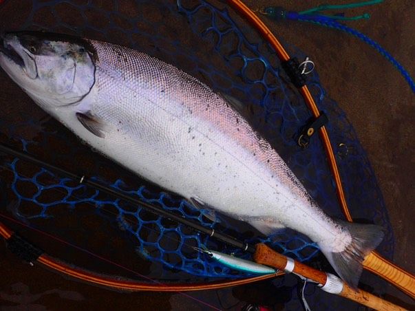 3月20日PM3:50 神奈川 中戸川 健太さん サクラマス 62.0cm3.5kg 新幹線下流左岸(フィッシャーズ裏) フォトンR110VRブルーバックチャートベリー 『プロセスがあるからこそ何度釣ってもこの魚だけは手が震えます。』