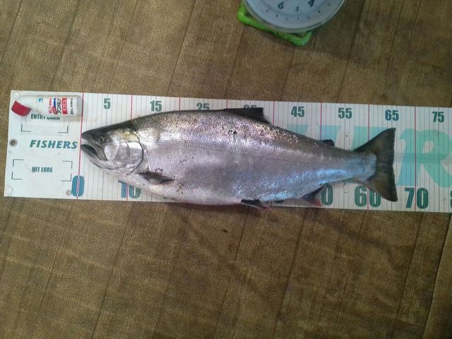 4月7日AM8:00 三重 そらまめこーじさん サクラマス 68.0cm5.0kg 東幼児園前右岸 桜鱒スプーン メッキVer両面ハンマー14gMHCB 『初めまして...なんか友人のS野がここ(越前)に持って行けと言うので持ってきました。』 (↑そんな時間があるのなら一投でも多く投げたいというのがそらまめさんの信条というか釣りスタイルだそうですw)
