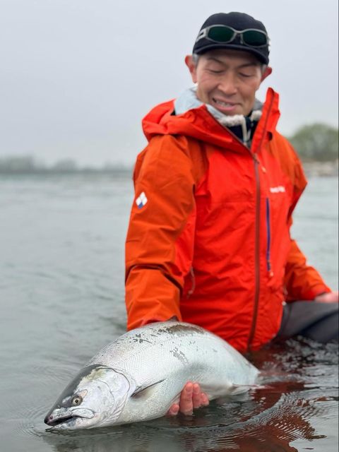 4月11日AM7:30 群馬 山本 修平さん サクラマス 64.0cm3.5kg 五松橋下流右岸 Dコンタクト85チャートバックヤマメ 『対岸からゴン様が駆け付けてくれて...撮影等いろいろとお世話になりありがとうございました♪』 娘婿の一大事に全力の仙人様が尊すぎますね♪