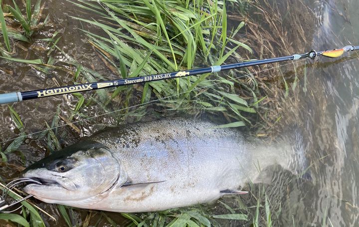 4月15日AM10:25 愛知 小林 純さん サクラマス 65.5cm3.985kg えち鉄上流左岸 シュガーディープSG90Fブースト キンクロ 『やりました!感無量です!この一匹は佐藤さんに捧げたい と思います!』