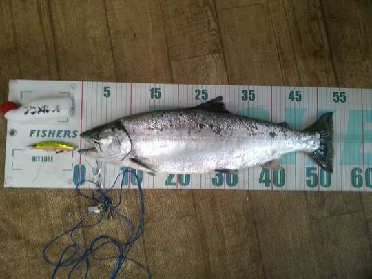 5月3日AM5:50 愛知 板津 隆之さん サクラマス 55.5cm2.3kg 新幹線下流右岸(フィッシャーズ裏) トリコロールGT88MD-Fグリーンゴールドアユ 『秀さんですか?...車で寝ておられましたよw』