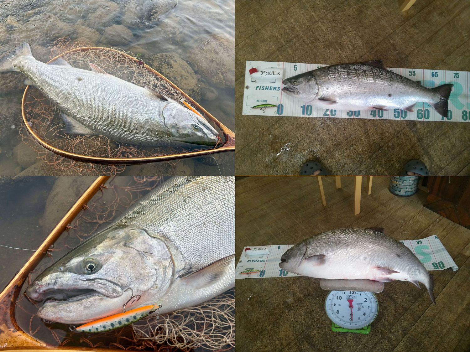 5月15日AM6:15 福井 take-projectさん サクラマス 74.0cm5.8kg ハタヤ前左岸 フォトンR95CFグリーンヤマメOB 『九頭竜川は本当にポテンシャルを秘めたブランドリバーだということを痛感させてくれた素晴らしい魚でした( `∀´)v』