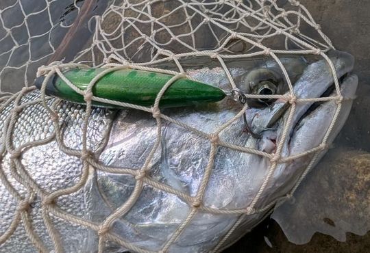 5月21日AM10:32 静岡 小柳津 一彰さん サクラマス 59.0cm2.2kg 新幹線下流右岸(フィッシャーズ裏) マルコシープ72Sライムチャート 『サクラマス釣りまた始めました♪』 Sacanaフック Haken(ハーケン)がガッチリフックUP!!!