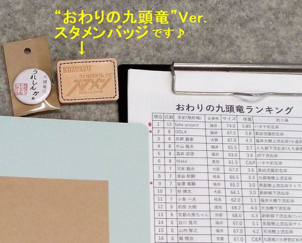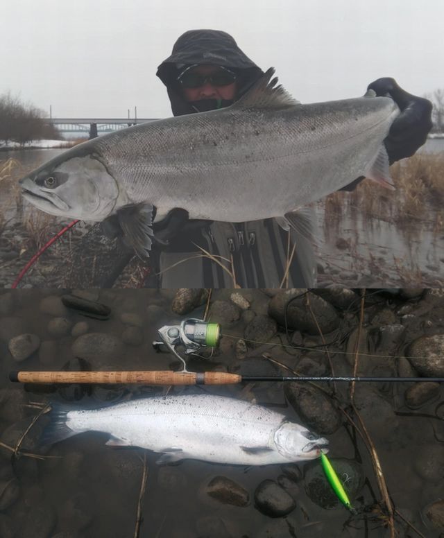 2月2日AM10:00,PM2:50 岐阜 滑谷 和剛さん サクラマス 52.5cm1.4kg 59.0cm2.3kg 九頭竜橋上流左岸ハピライン(旧JR)下流右岸 シュガー2/3ディープSG85FパールアユフォトンR110Mライムチャート 『だってスタメンバッジ付けてるもんw』