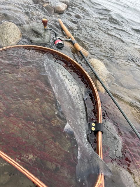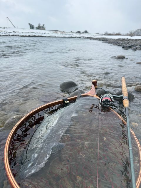 2月6日AM11:30 愛知 Makoさん サクラマス 55.5cmC&R 新幹線下流右岸(フィッシャーズ裏) ライトニングウォブラー18g アバロン グリーンGオレンジ 『スタメンバッジとうれしんかバッジの相乗効果ですw』