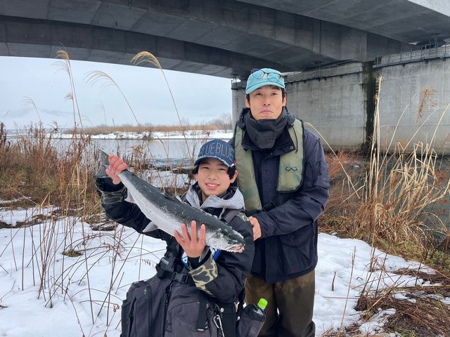 2月11日AM10:55 石川 福島 章太さん(小6) サクラマス 62.0cm2.8kg 新幹線下流右岸(フィッシャーズ裏) アルボル90HFブルーグリーンシルバーパーマーク 『手取川でこのアルボルくれた方トラウト雑誌【鱒の森】の関係者様ありがとうございました〜〜!!』 お父様...ランディングミスでフックが外れ、びしょ濡れになりながら水中のサクラにネットをかぶせて取り込んだそうですw