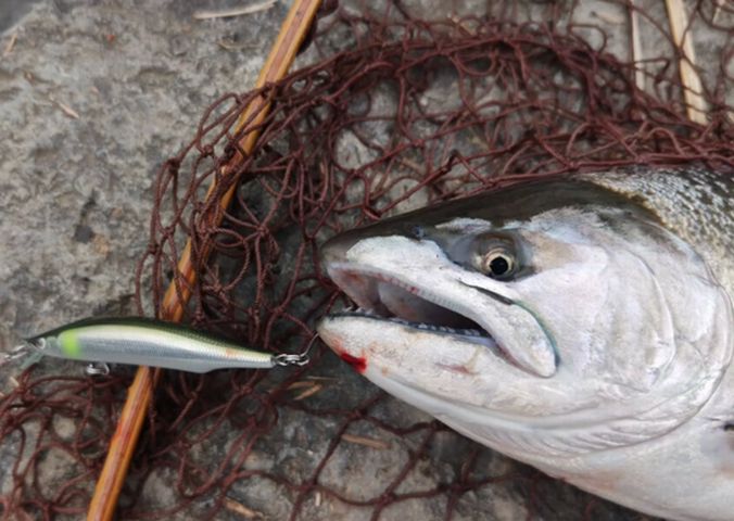 2月27日AM7:50 京都の秀ちゃん サクラマス 60.0cm2.7kg 新幹線下流右岸(フィッシャーズ裏) レベッカ90SR-SS アユ 『最近じゃ章太君Ptって言われちゃうけど、いつもの所で釣りましたw』